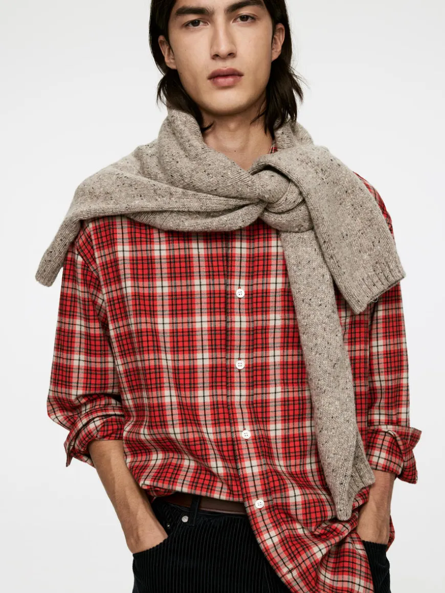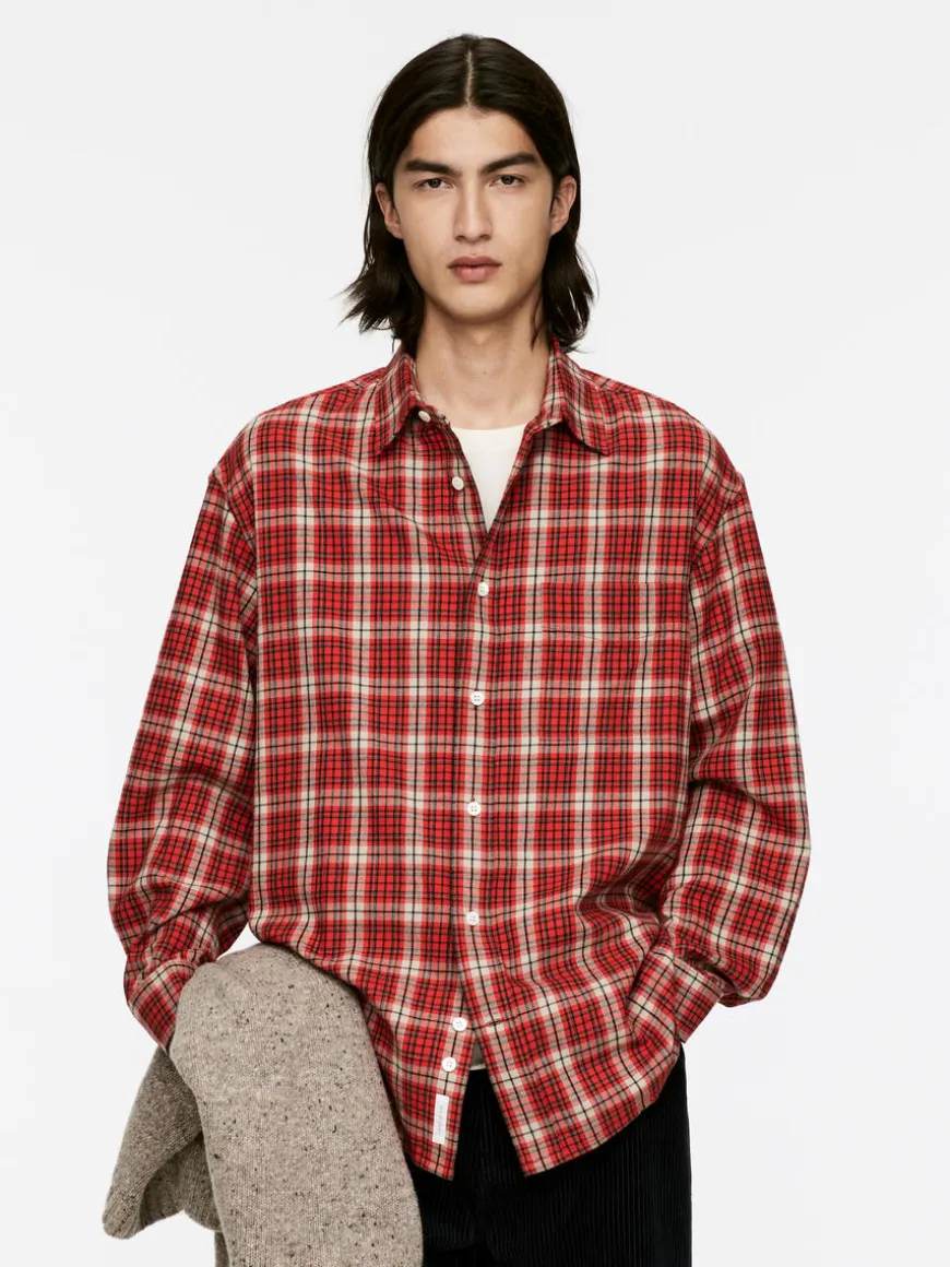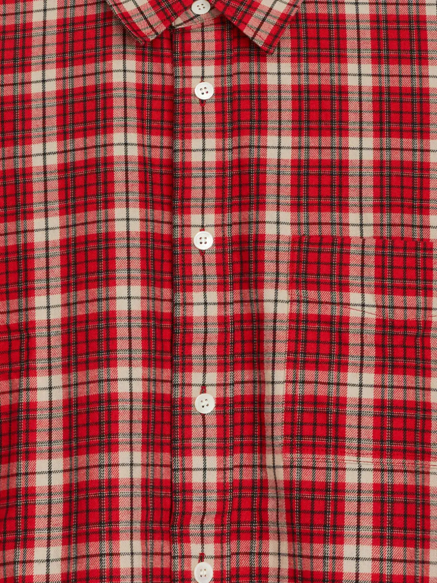 Flannel overshirt crafted from cotton. A loose-fitted style with slightly dropped shoulders. Styled with a single chest pocket and buttoned cuffs.