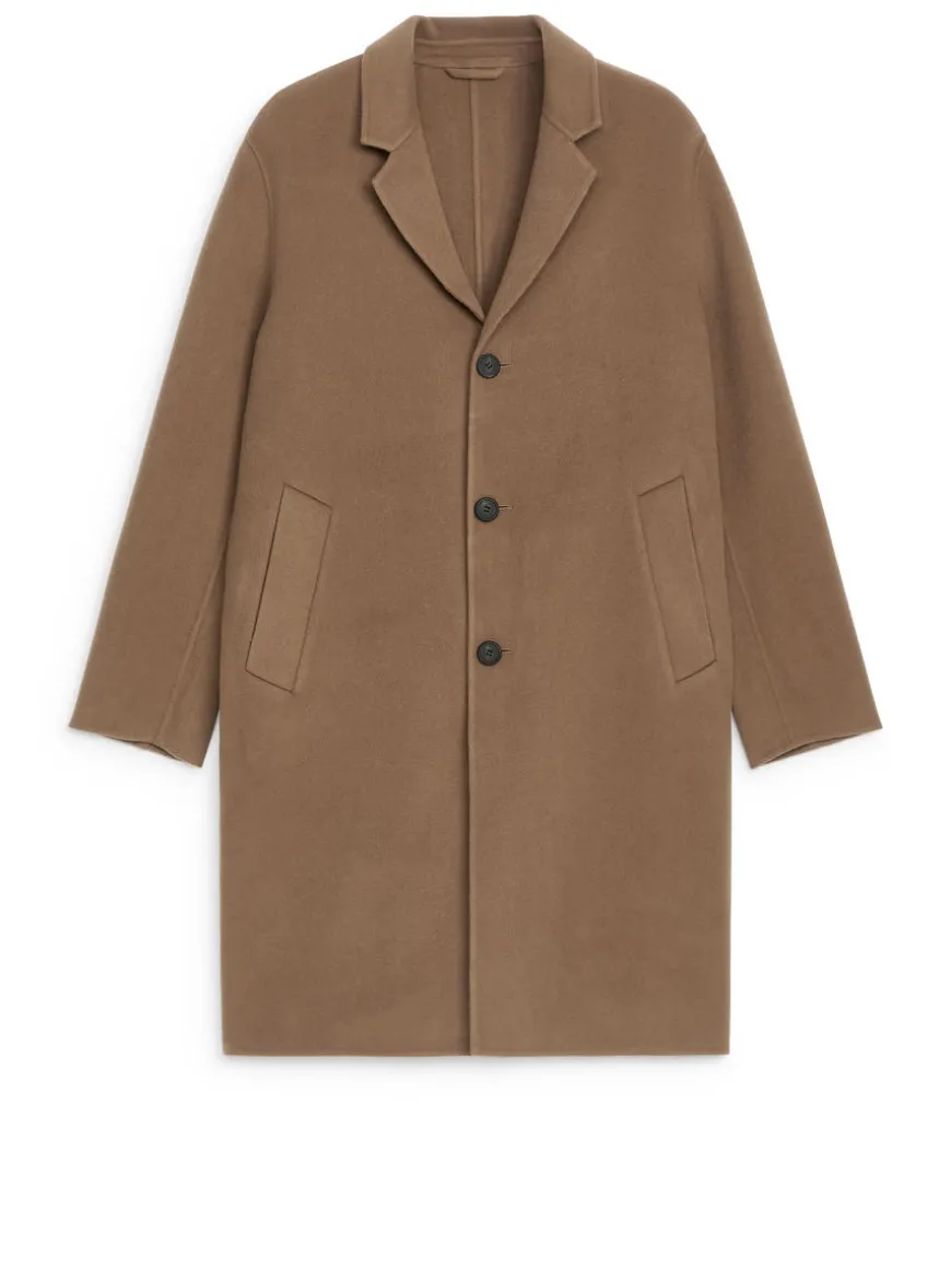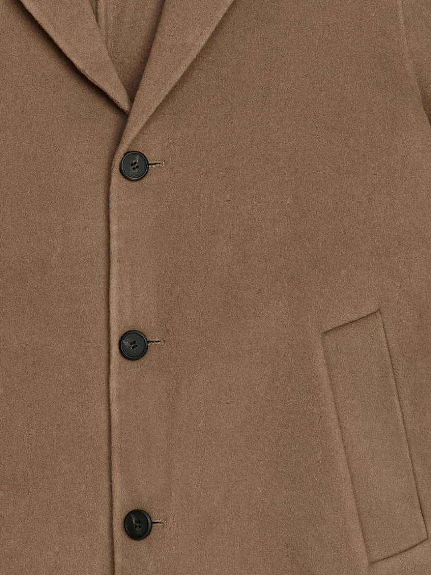 Topcoat crafted from a double-face wool fabric. A relaxed style with a long silhouette and slanted pockets. The shell fabric contains 100% RWS wool (TE-00047206). Products certified to the Responsible Wool Standard (RWS) contain wool fiber from farms independently certified to animal welfare and land management requirements.