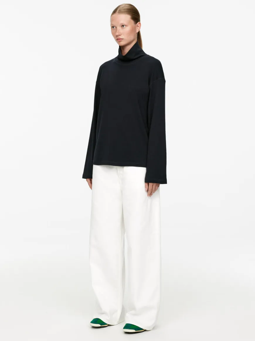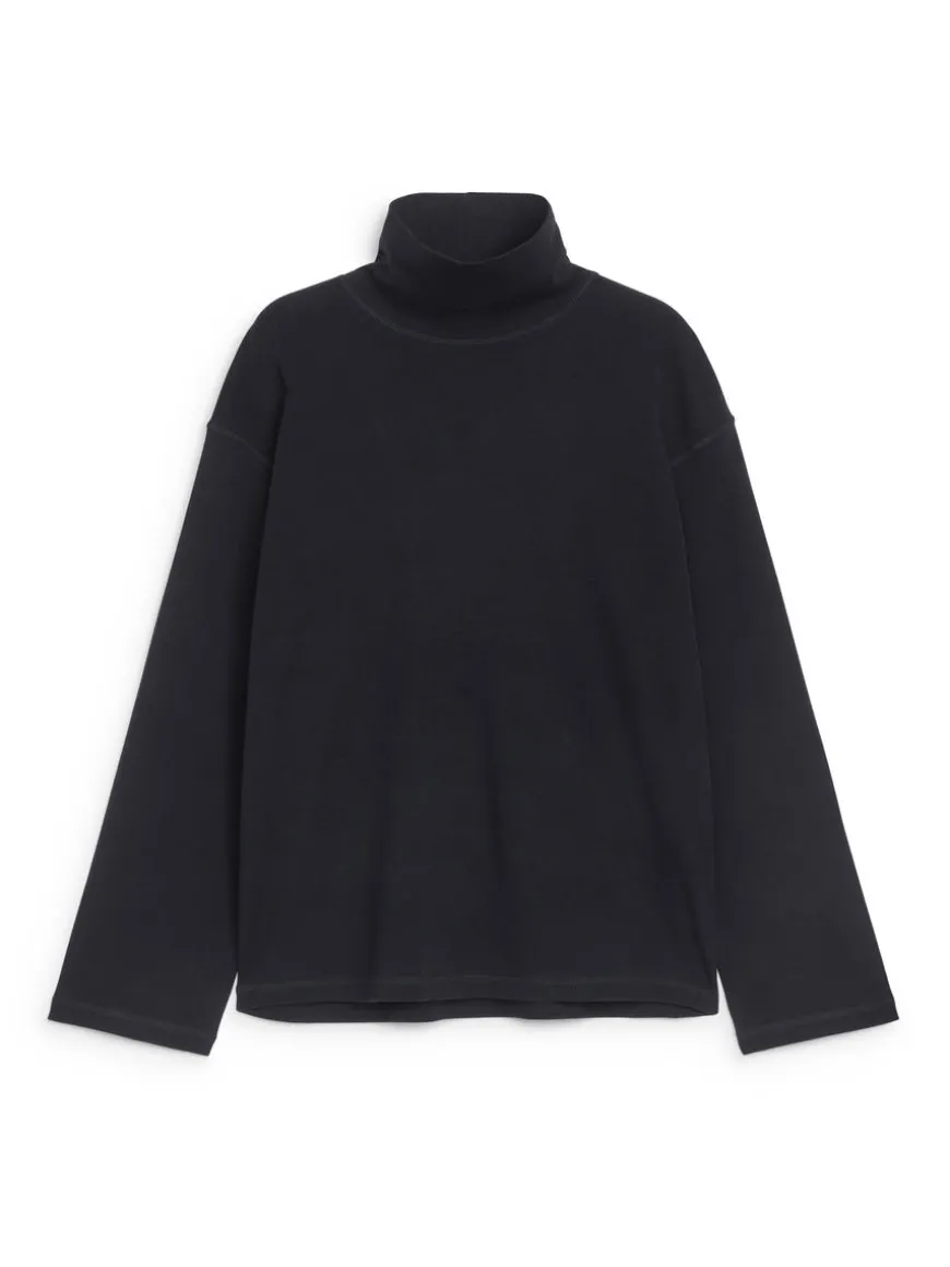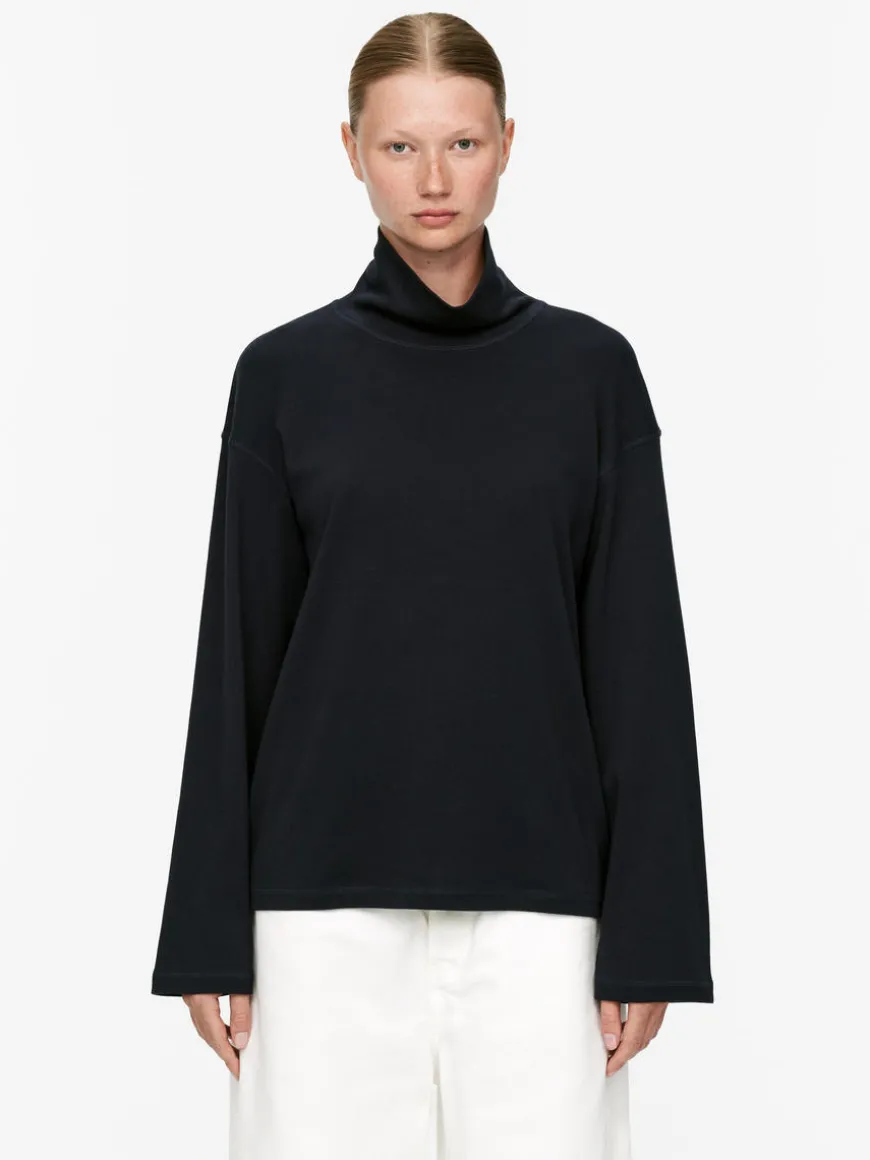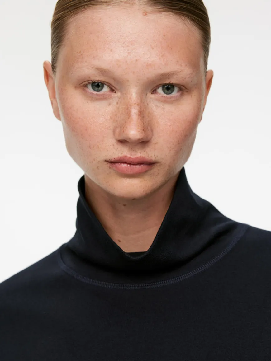 Roll-neck top in a crêpe jersey made of cotton. A slightly looser fit with dropped shoulders.
