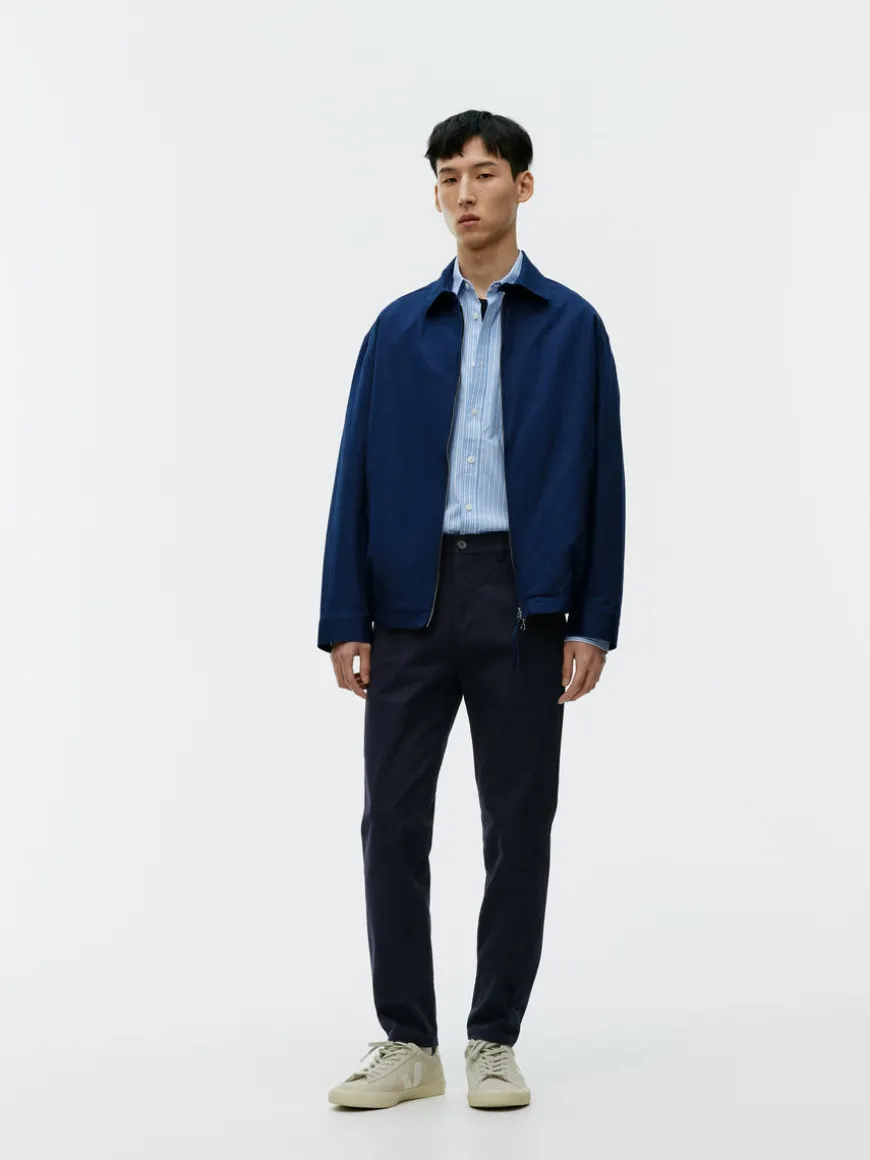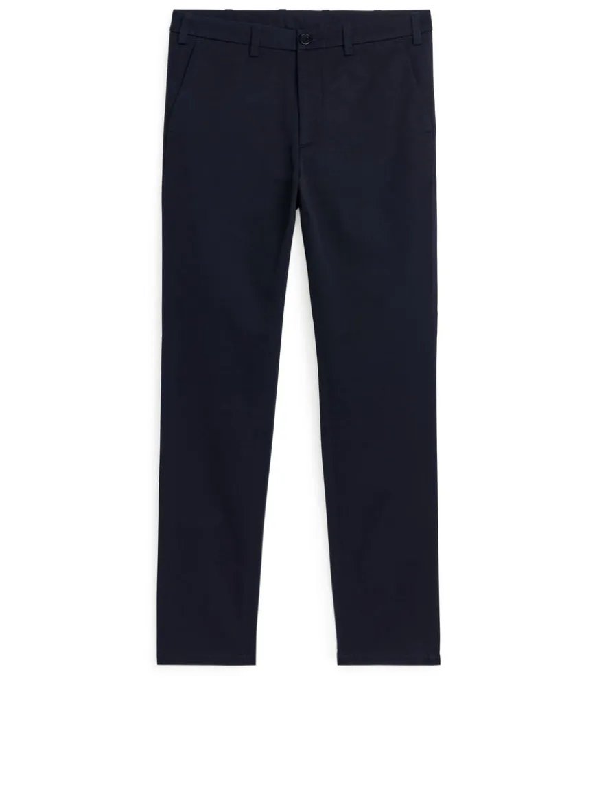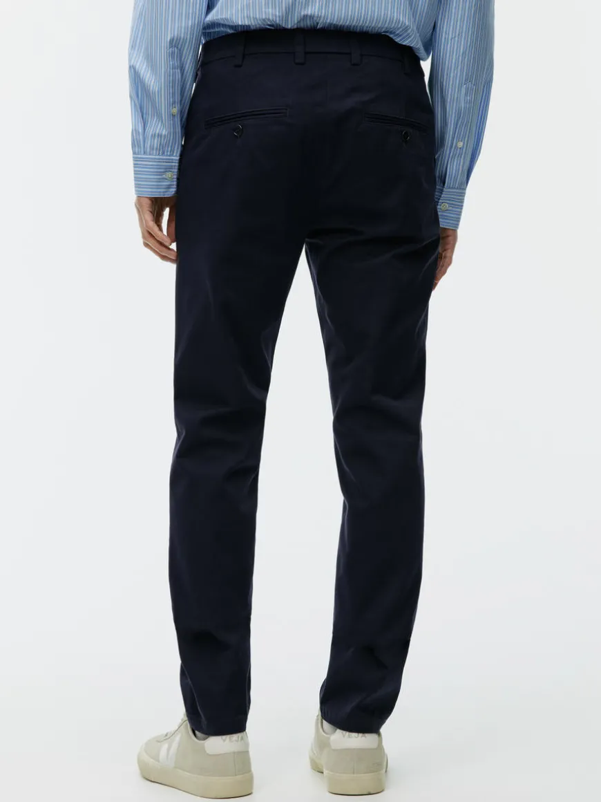 Everyday chino trousers in medium-weight cotton twill with a clean appearance. A slim-fit style with slanted pockets and buttoned welt pockets at the back. Waistband with belt loops. Zip fly.