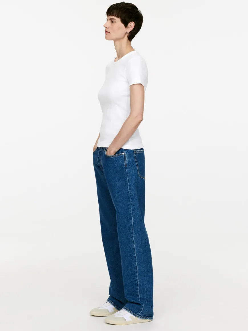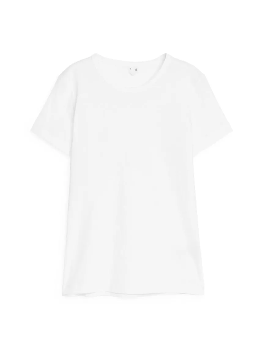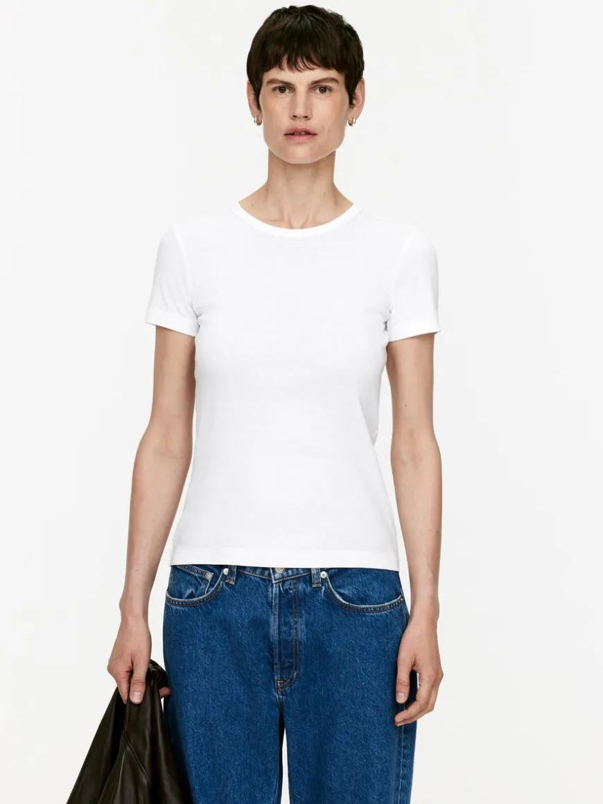 Crew-neck T-shirt crafted from cotton jersey. Rib at neck. Slim fit.