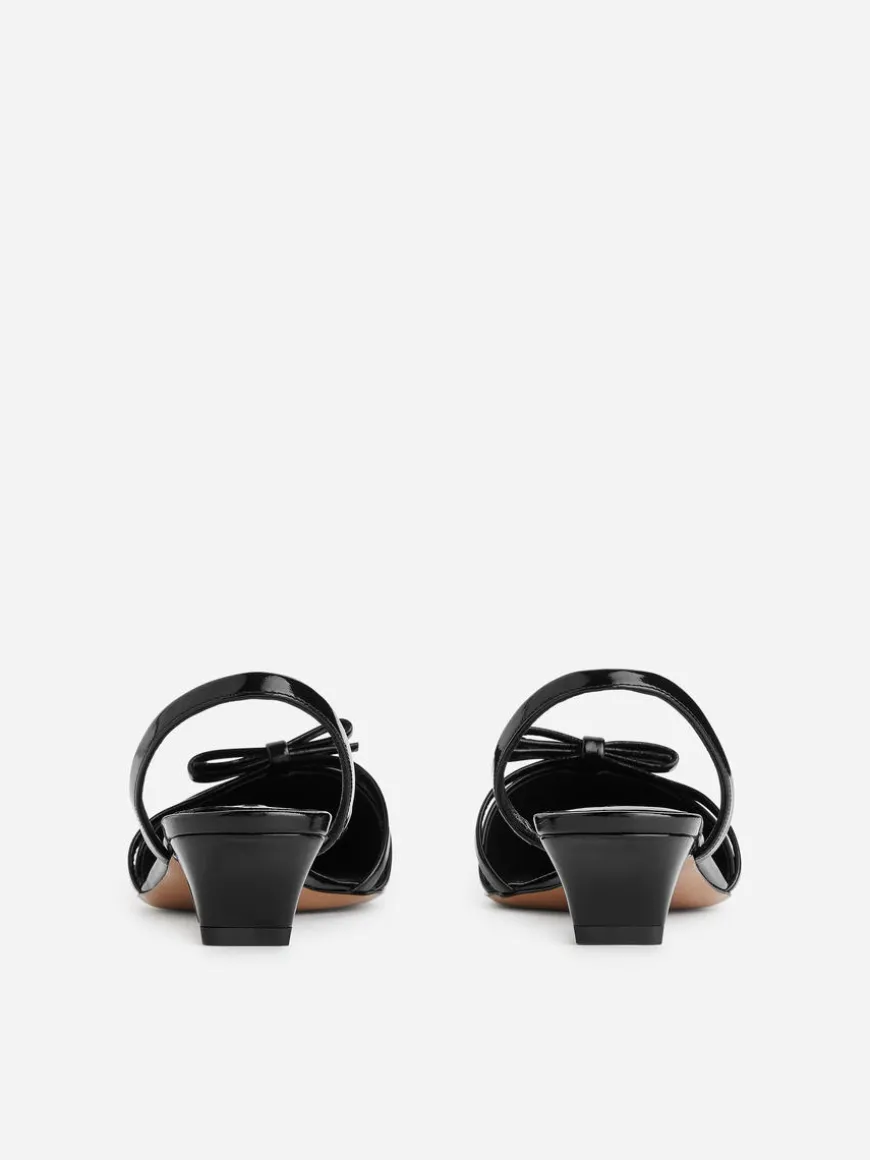 Slingback pumps in glossy chrome-free leather. Styled with low heel, pointy toe and decorative bow.