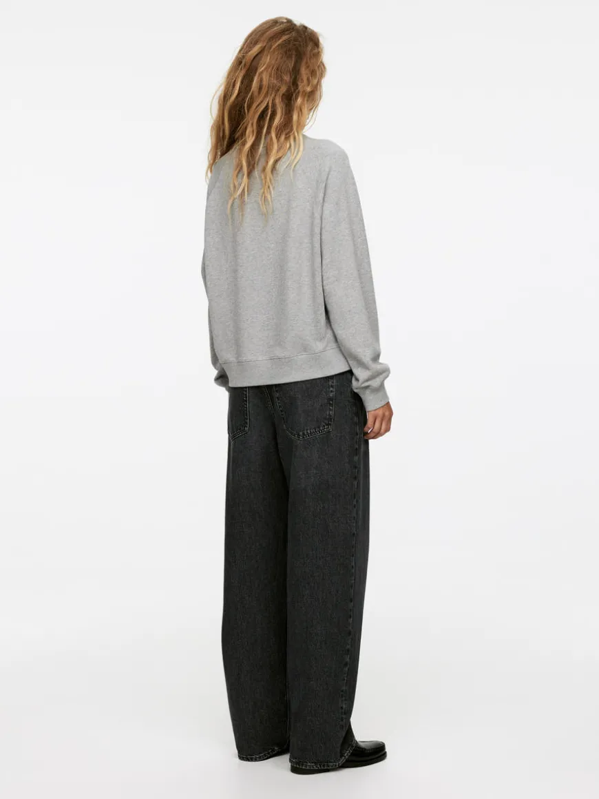 Slightly cropped sweatshirt with raglan sleeves. Crafted from cotton with a French terry underside for moisture-wicking properties. Ribbed trims.