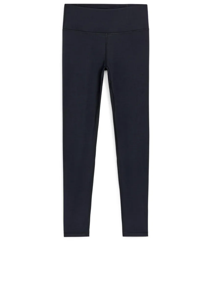 Slim-fitted tights made from a soft and stretchy breathable jersey fabric. A high waist, full length style with light support. Styled with a wide tubular waistband.