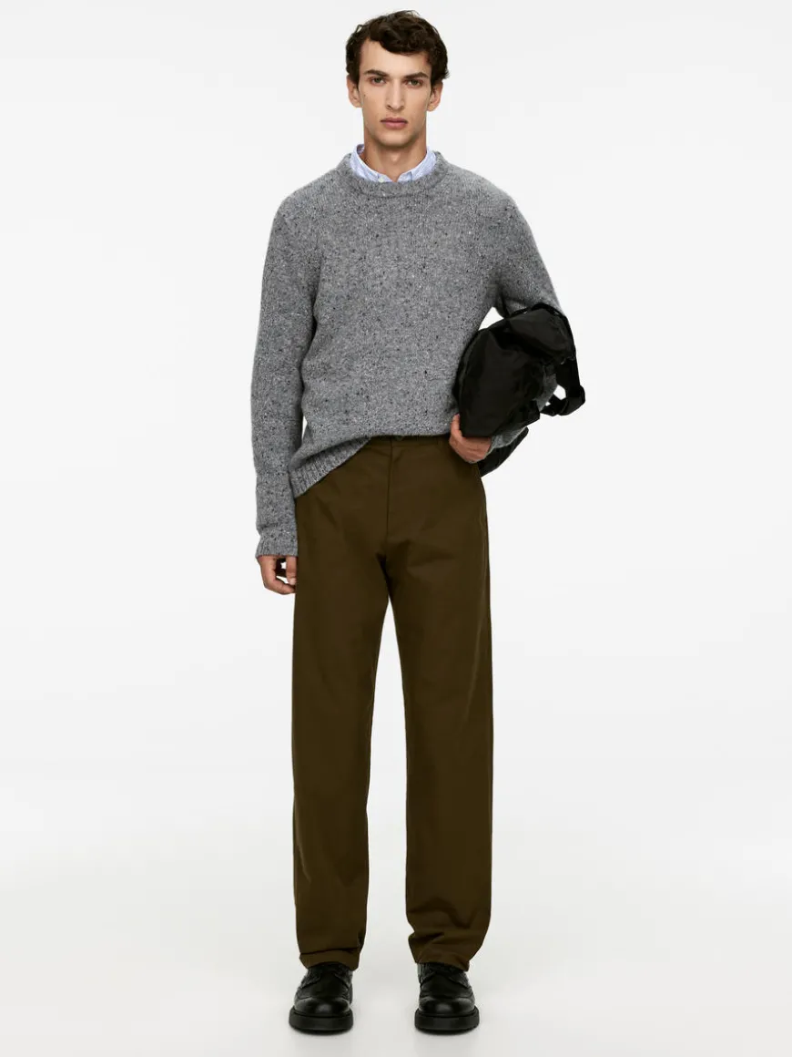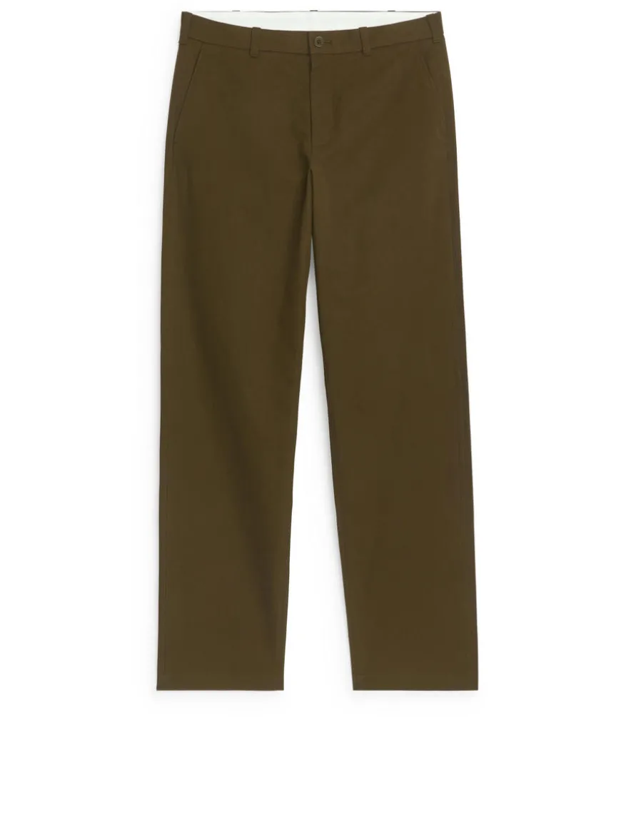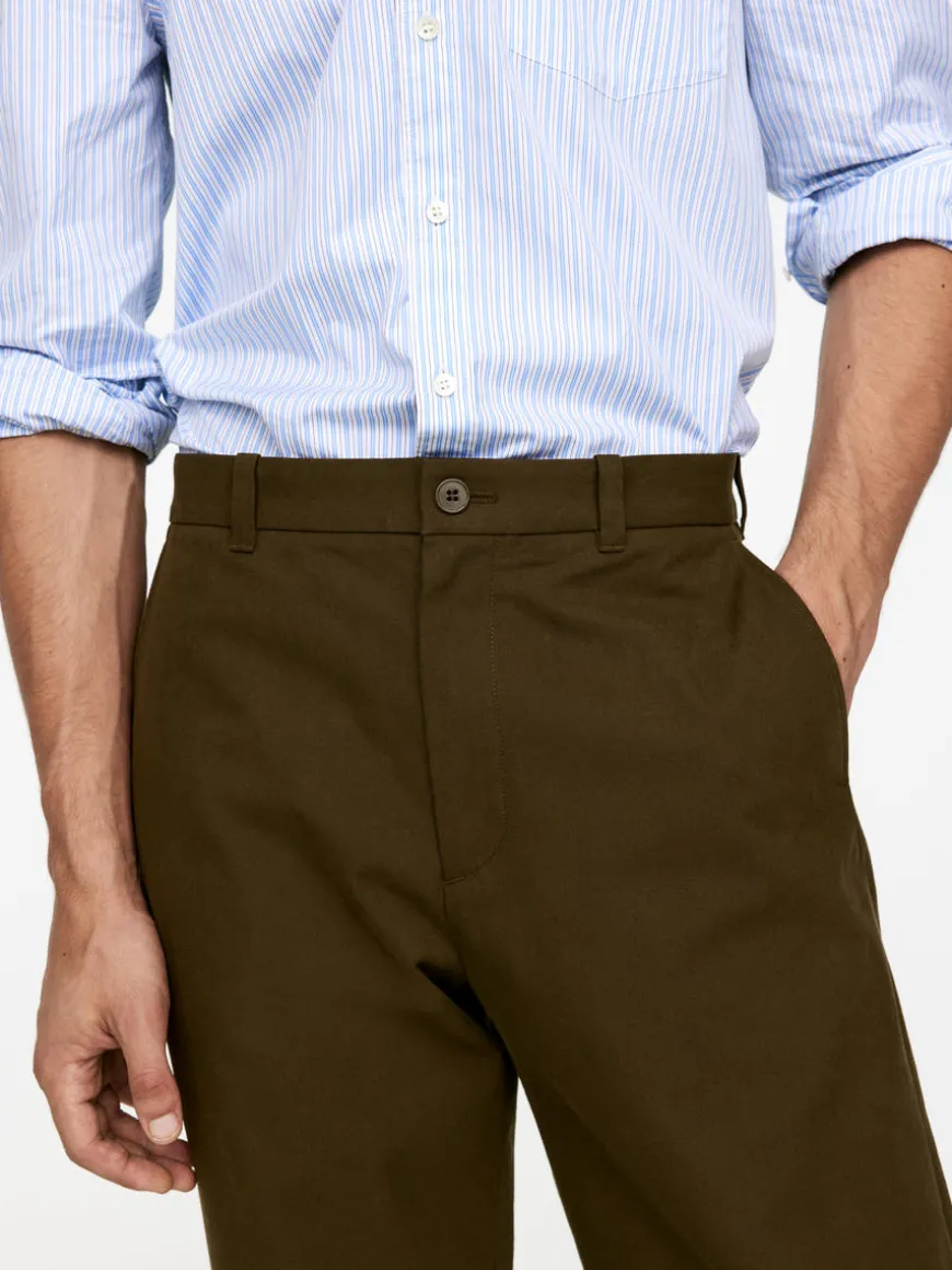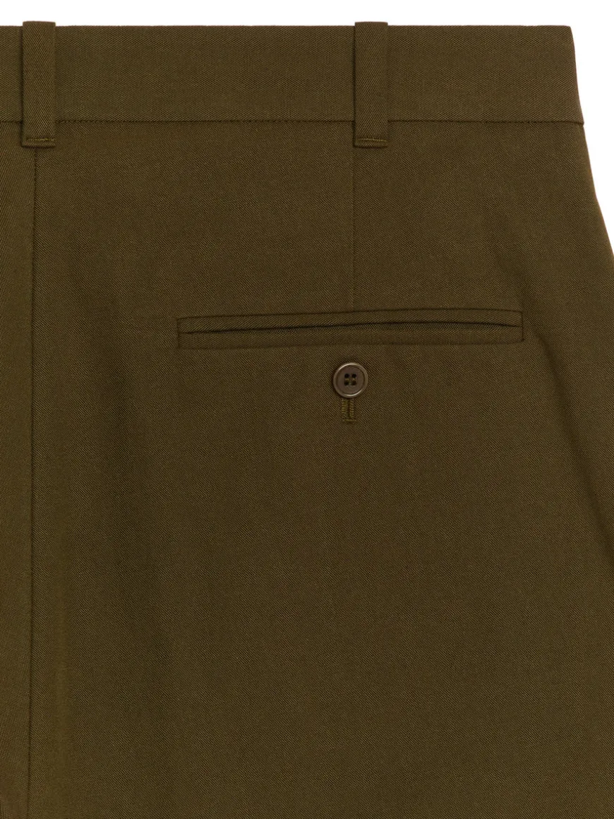 Straight-cut trousers crafted from a cotton blend. Detailed with slanted pockets at the front and two buttoned, jetted pockets at the back. Button closure and zip fly.