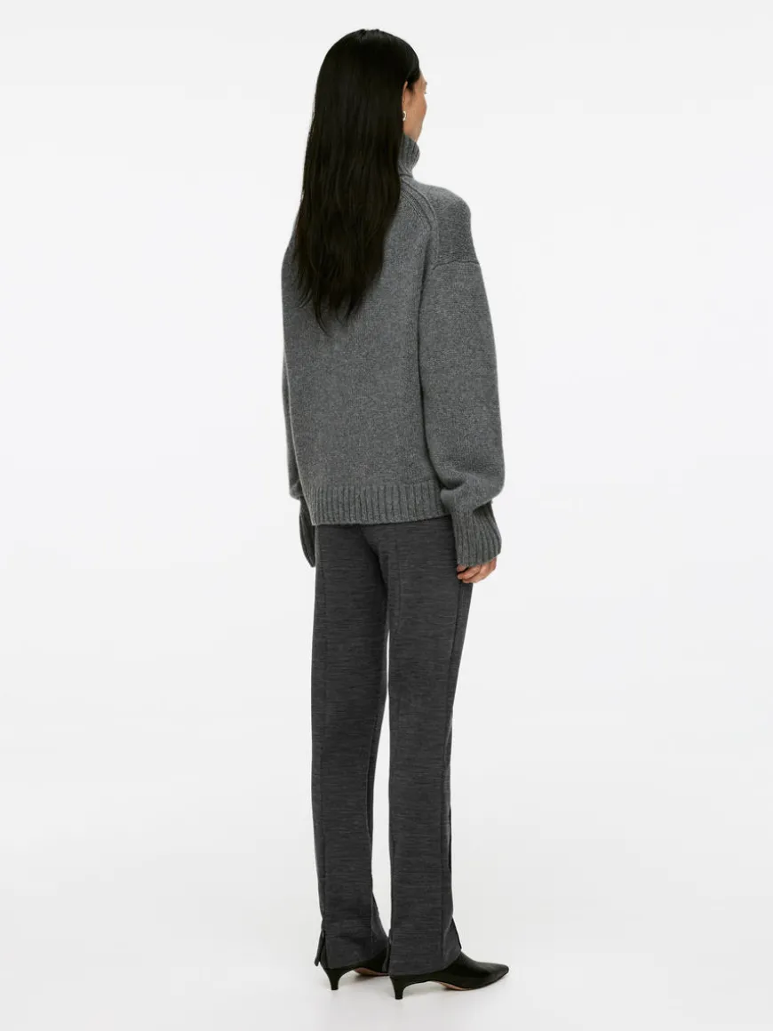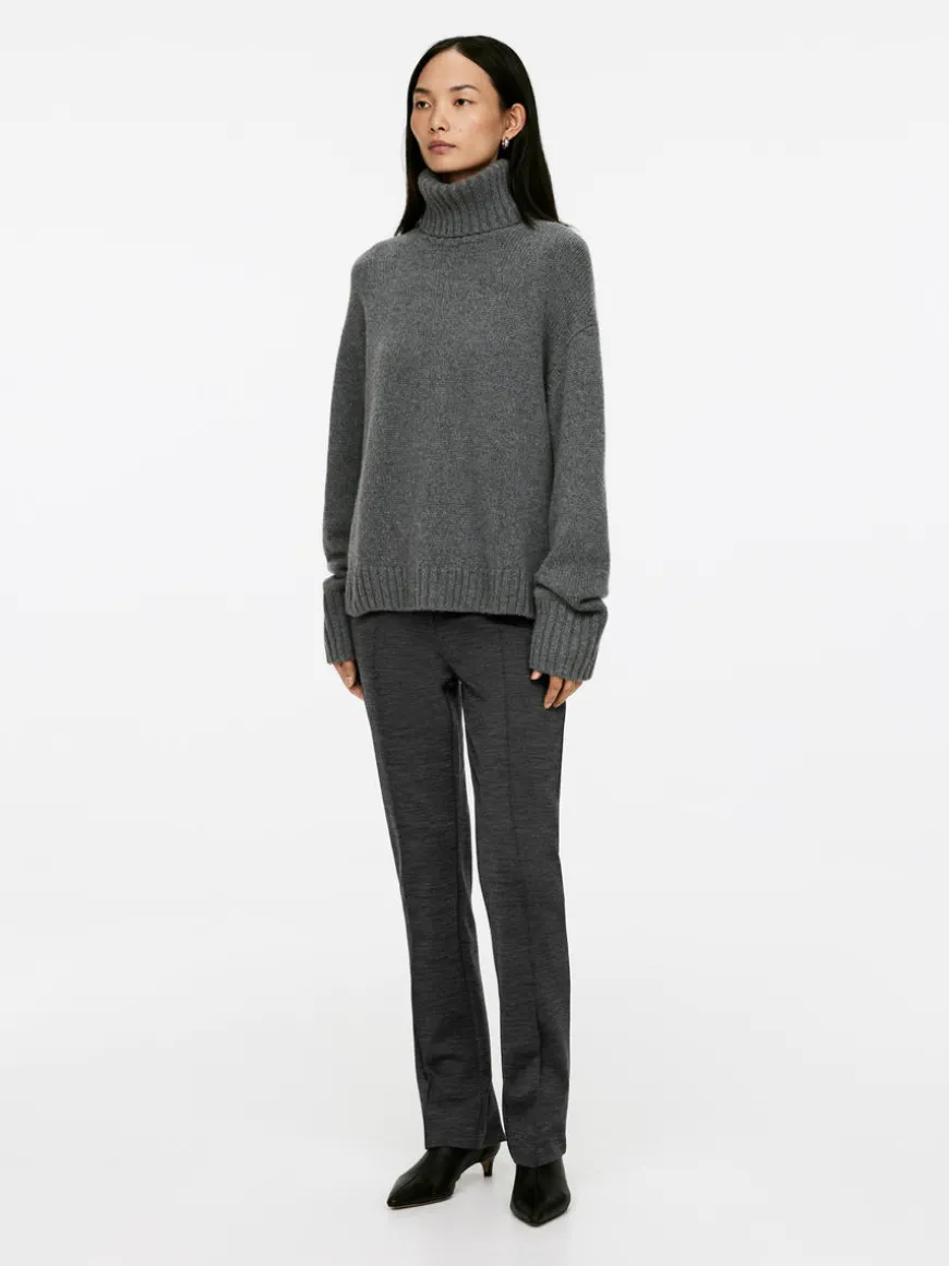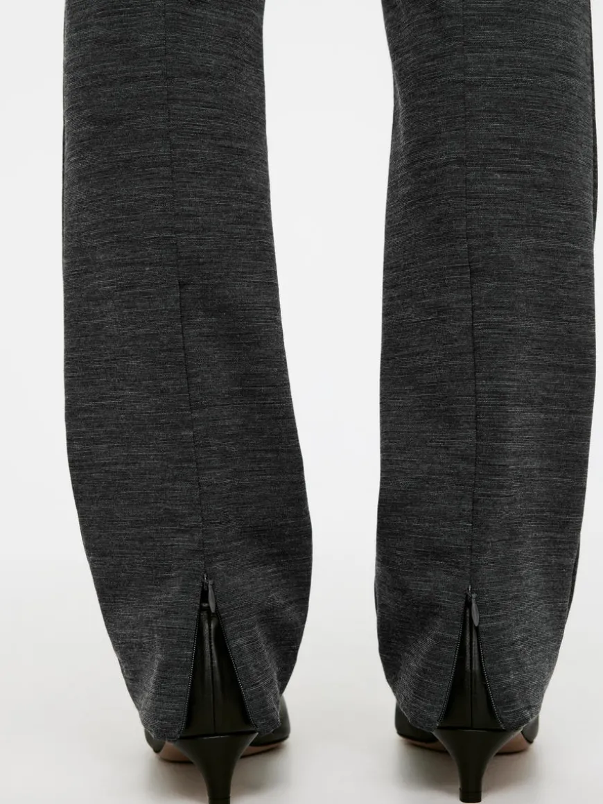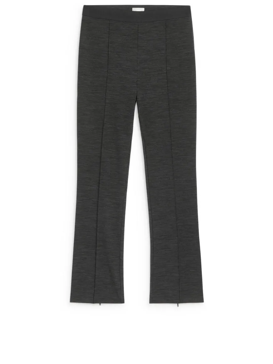 Slim trousers with pressed creases and a zip at centre back. Welt pockets at the back and elastics at waist. The trousers contain 30% RWS wool (TE-00047206). Products certified to the Responsible Wool Standard (RWS) contain wool fiber from farms independently certified to animal welfare and land management requirements.