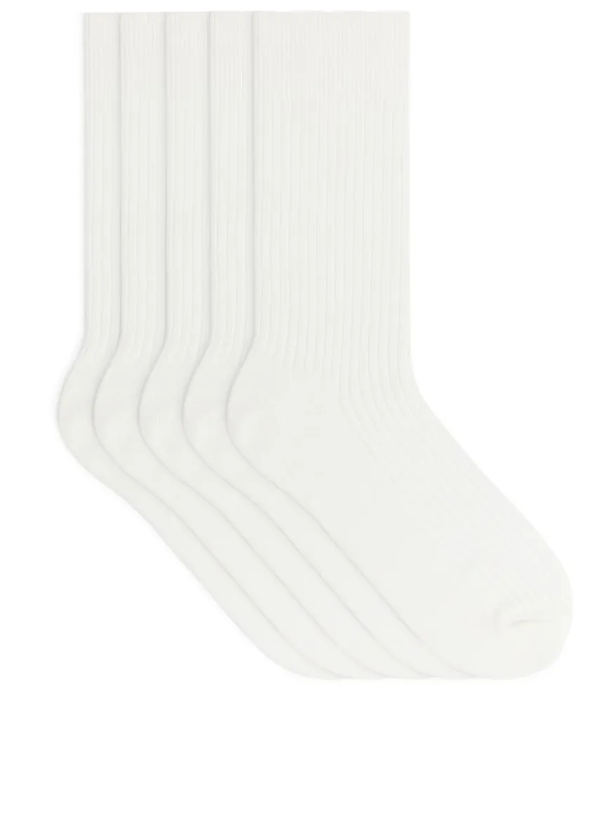 Classic rib-knitted socks made from a high-quality Supima cotton blend. The extra-long staple fibres of the Supima cotton are spun into strong and colourfast yarns that yield smooth, slightly lustrous jersey fabrics. Set of 5 pairs. Reinforced toe and heel.