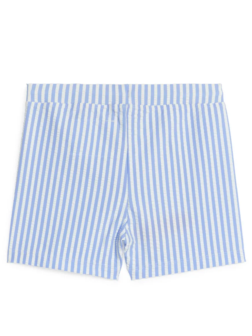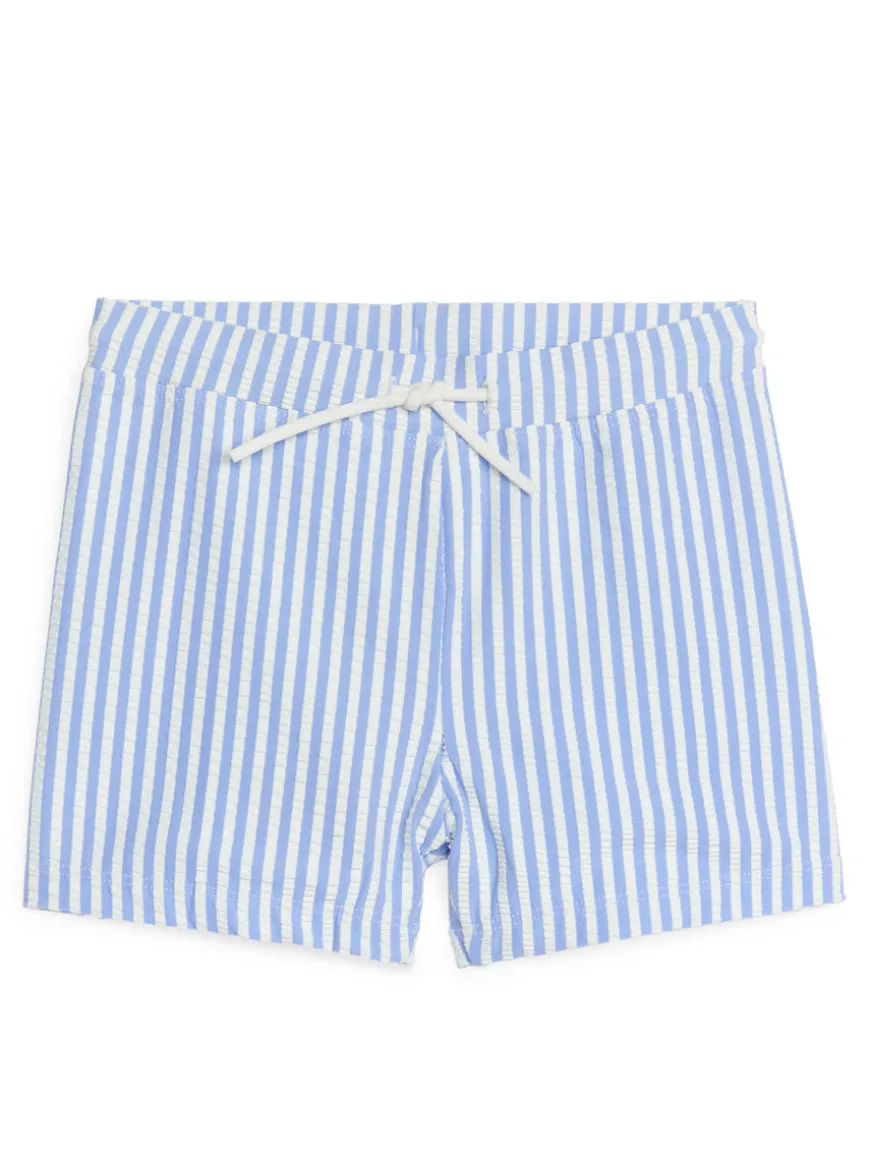Swimming trunks with an elasticated waist and a drawstring. Lined front.