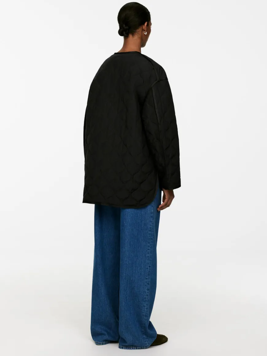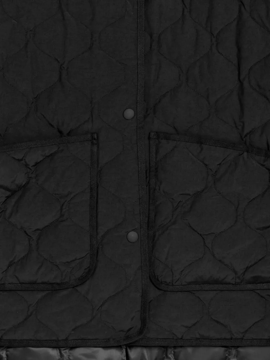 Quilted liner jacket filled with a blend of down and feathers. A single-breasted style with snap buttons and patch pockets at front. Relaxed fit. The Upcycled Down products are filled with recycled down and feathers sourced from Re:Down®. These materials, collected from used textiles, are washed and sterilised at high temperatures without the use of chemicals.