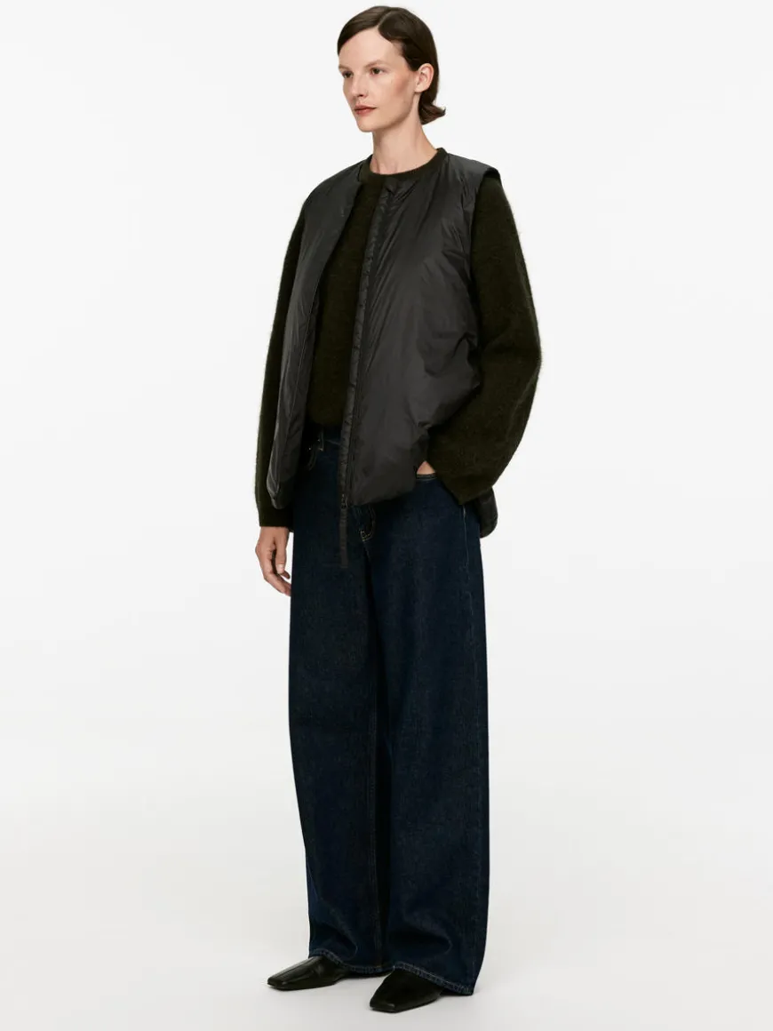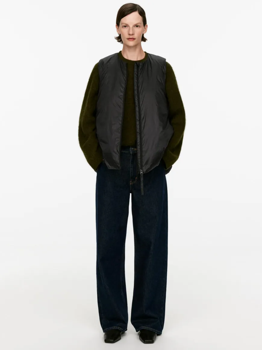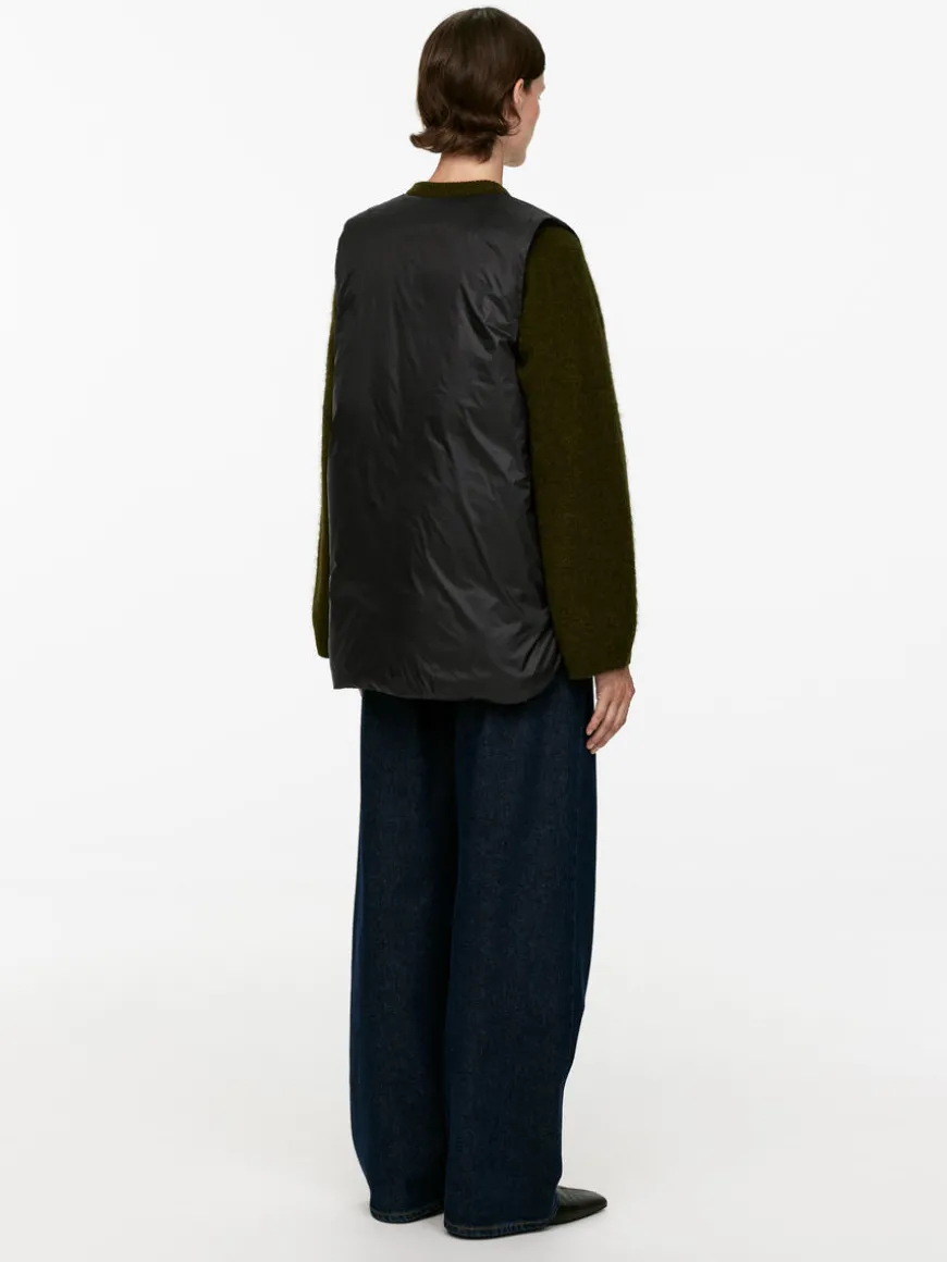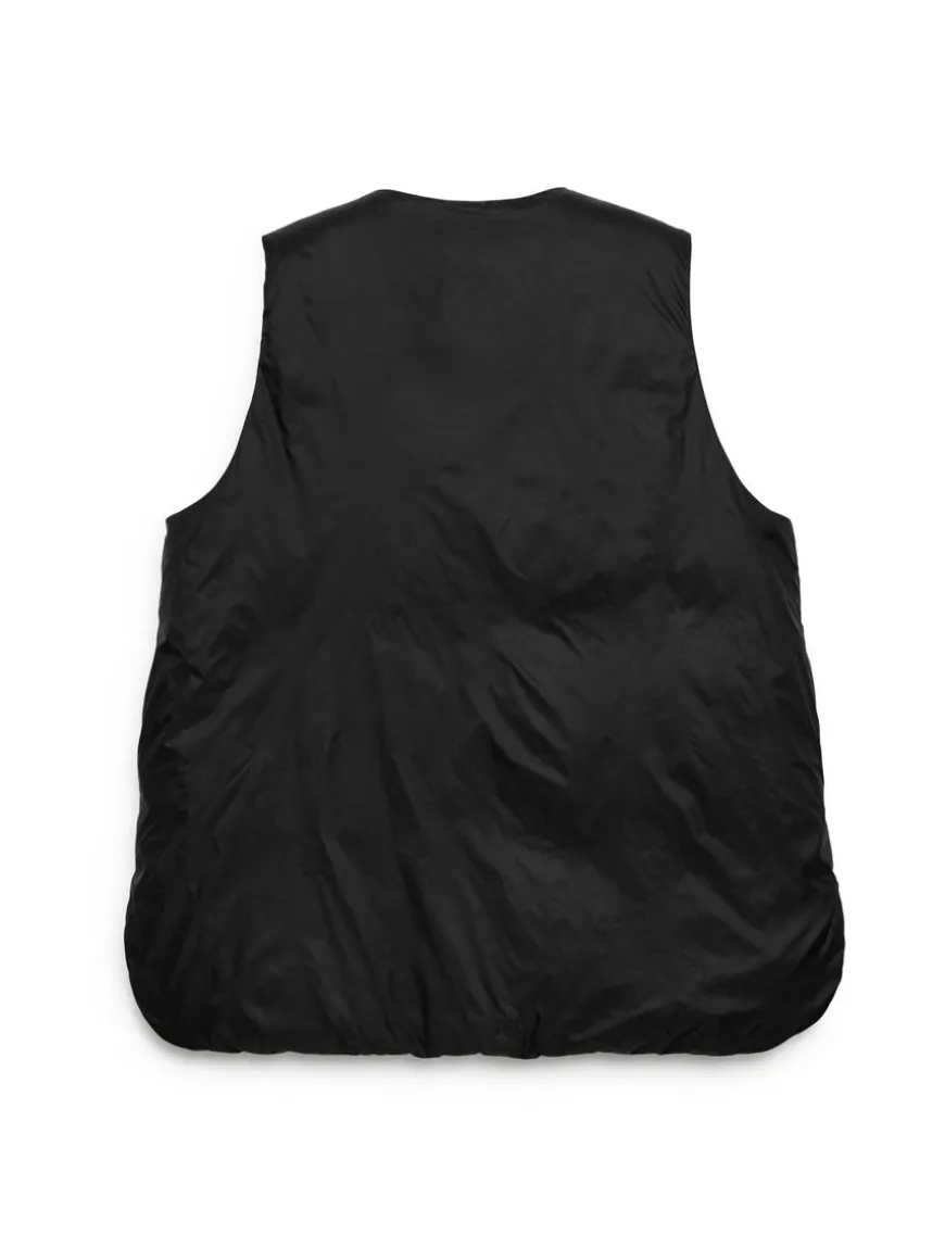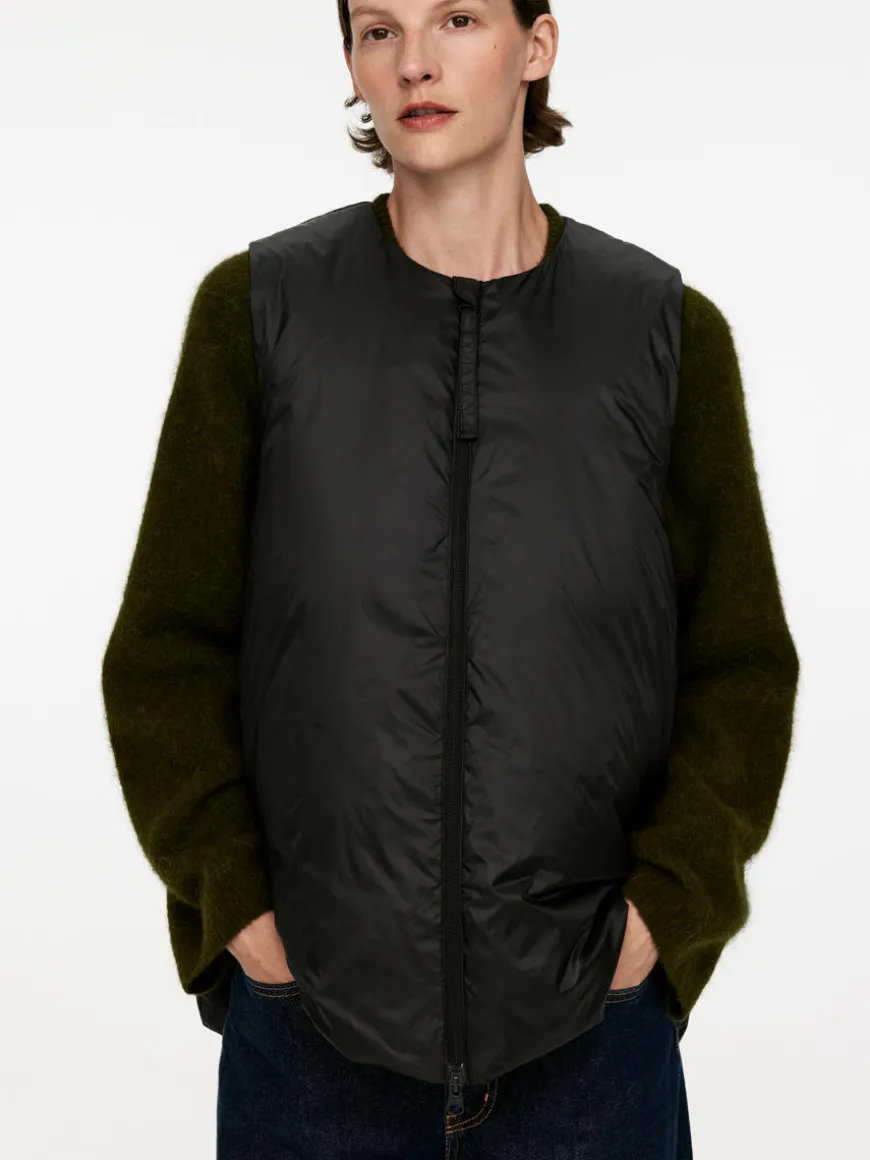 Lightweight vest with an inner layer made from a blend of down and feathers. A great layering piece styled with a round neck and zip closure. The Upcycled Down products are filled with recycled down and feathers sourced from Re:Down®. These materials, collected from used textiles, are washed and sterilised at high temperatures without the use of chemicals.