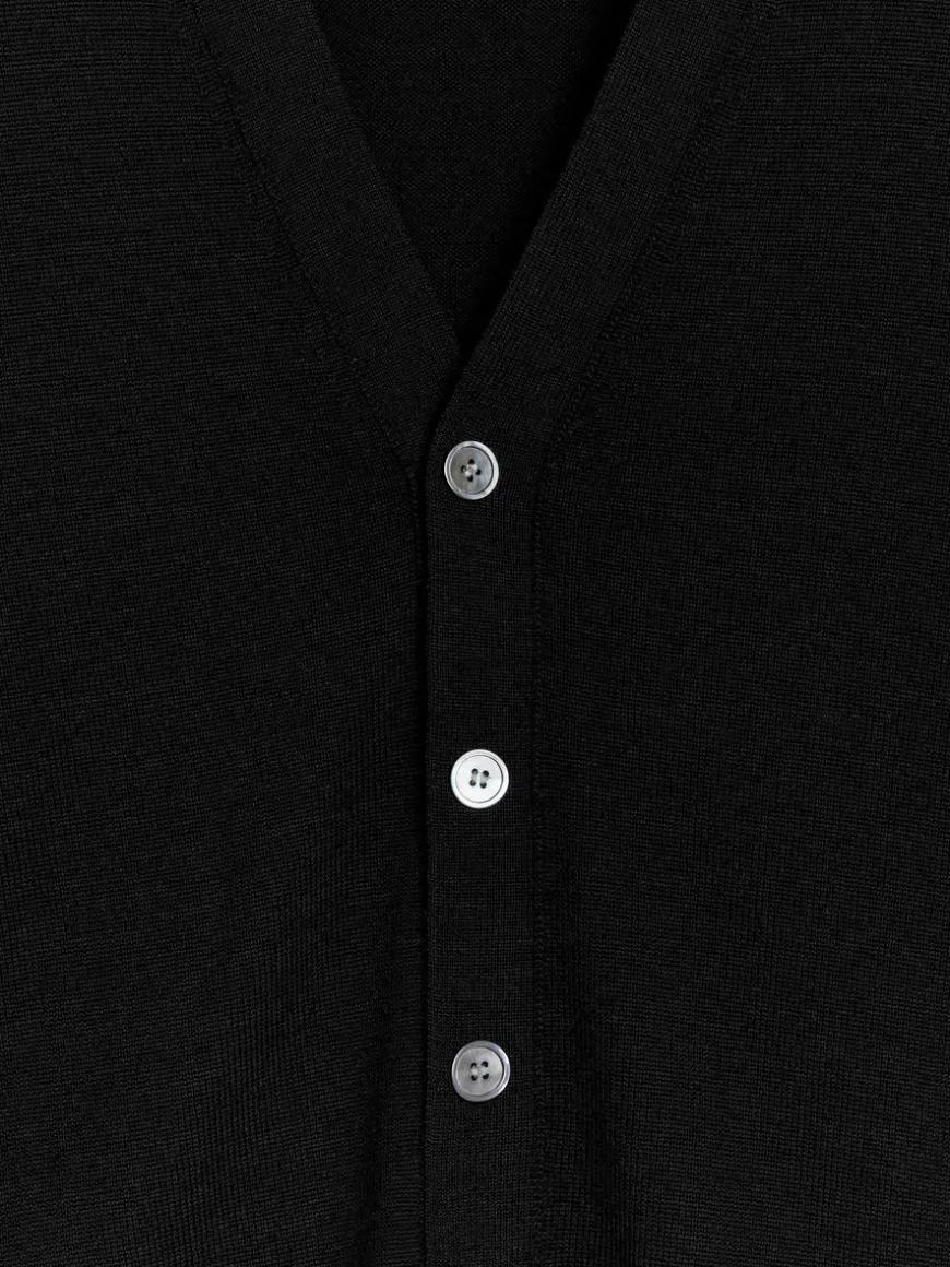 Regular-fit cardigan with a classic V-neck and button front. Styled with slightly dropped shoulders for a leisurely look.