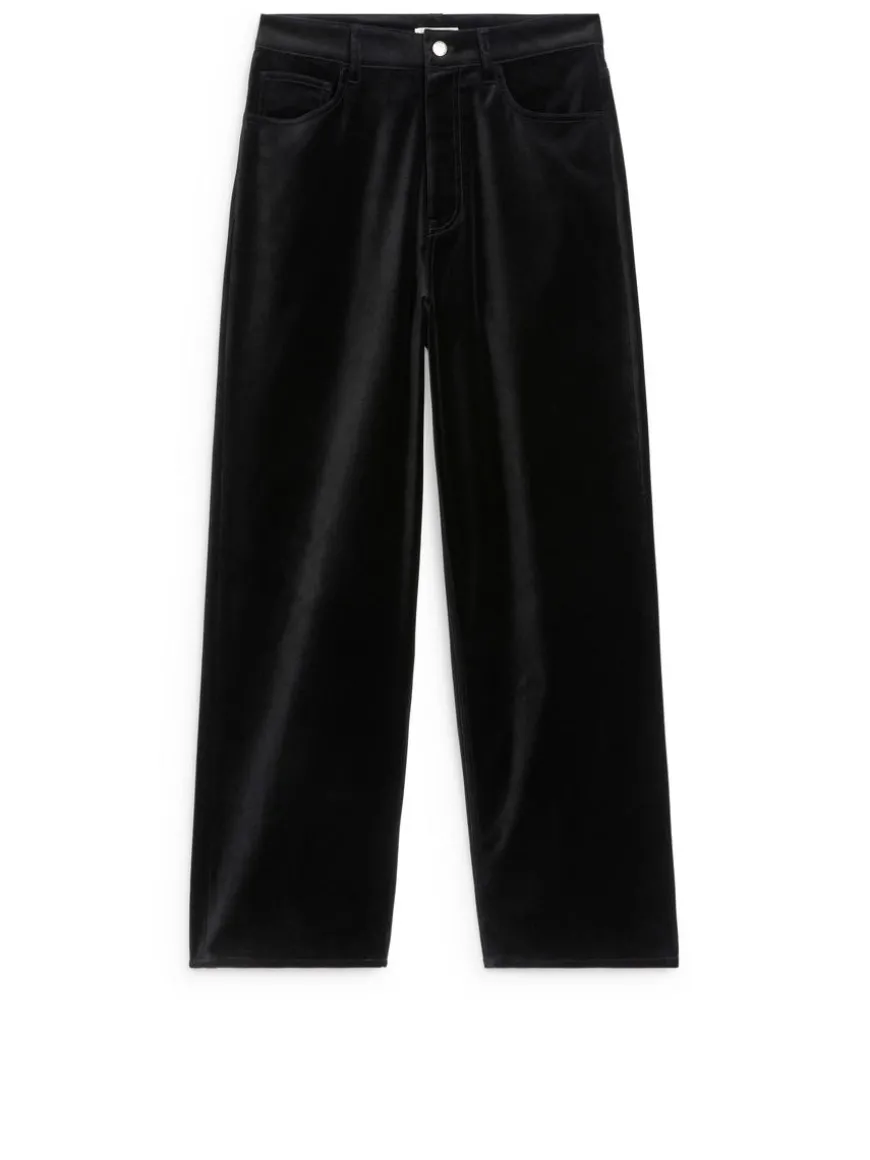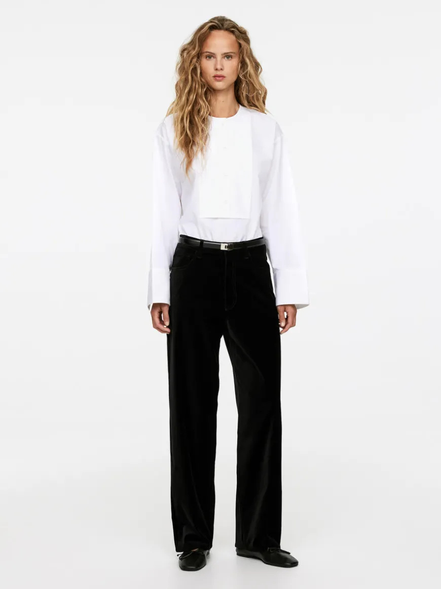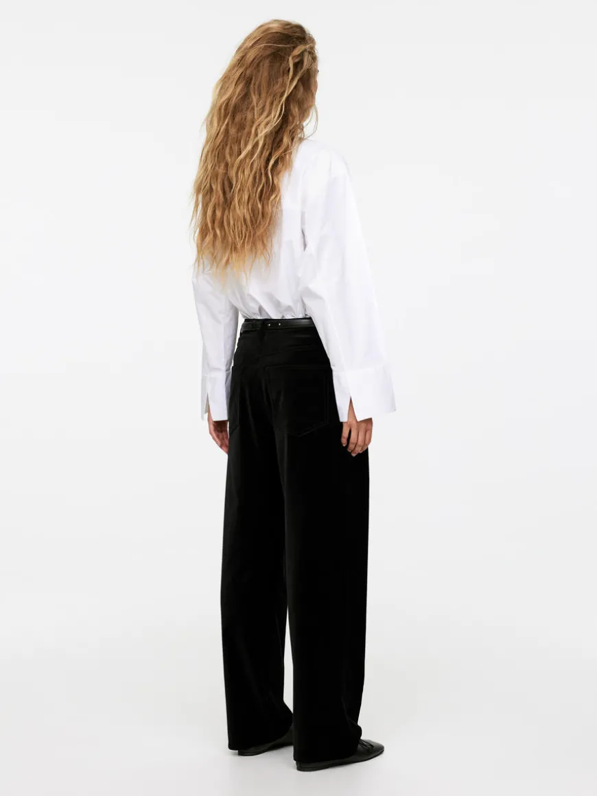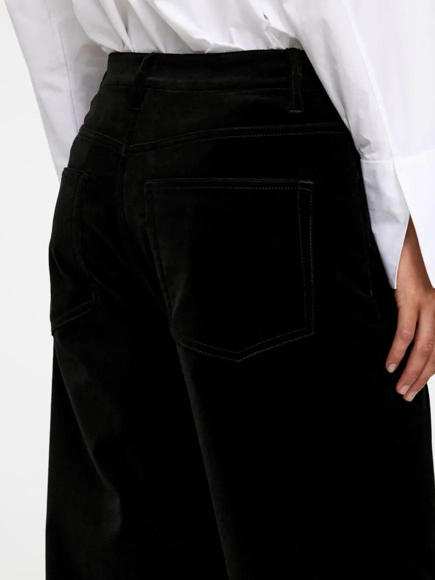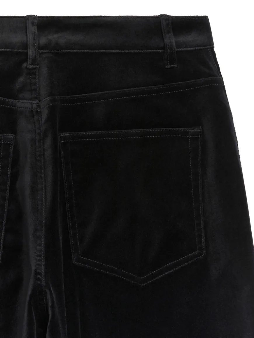 Mid-waist velvet trousers crafted from cotton and a hint of elastane for stretch. A five-pocket style with zip fly and button closure.