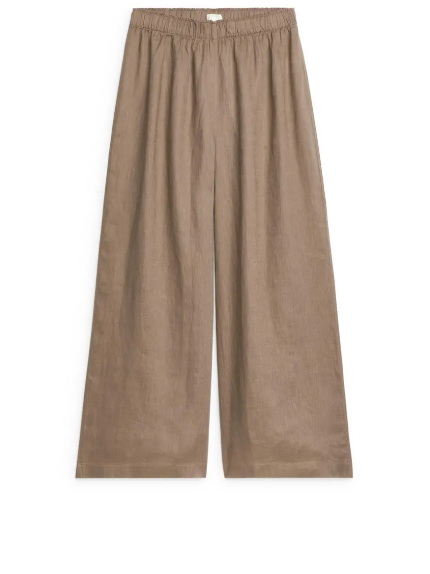 Wide-fit trousers crafted from pure linen. Detailed with wide elastics at waist.