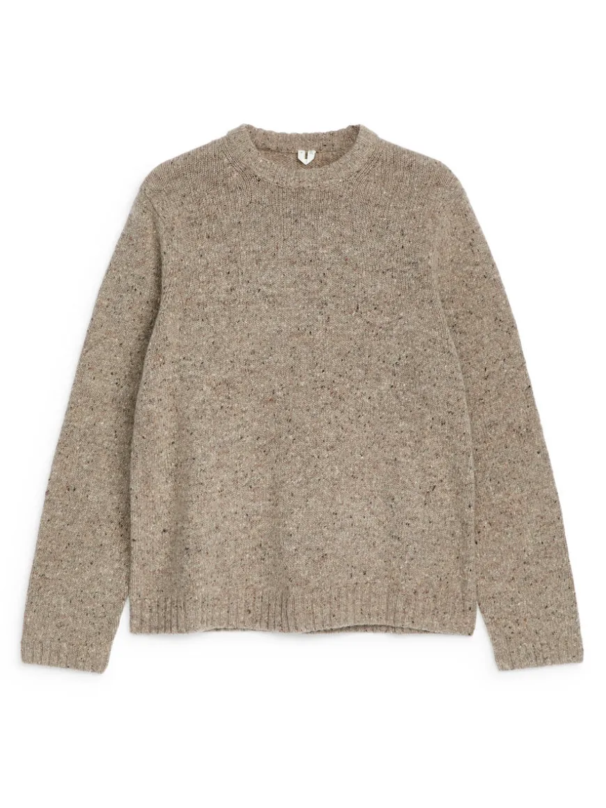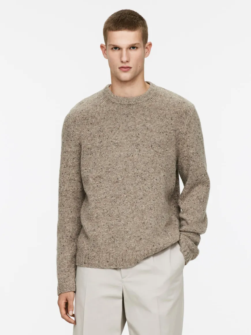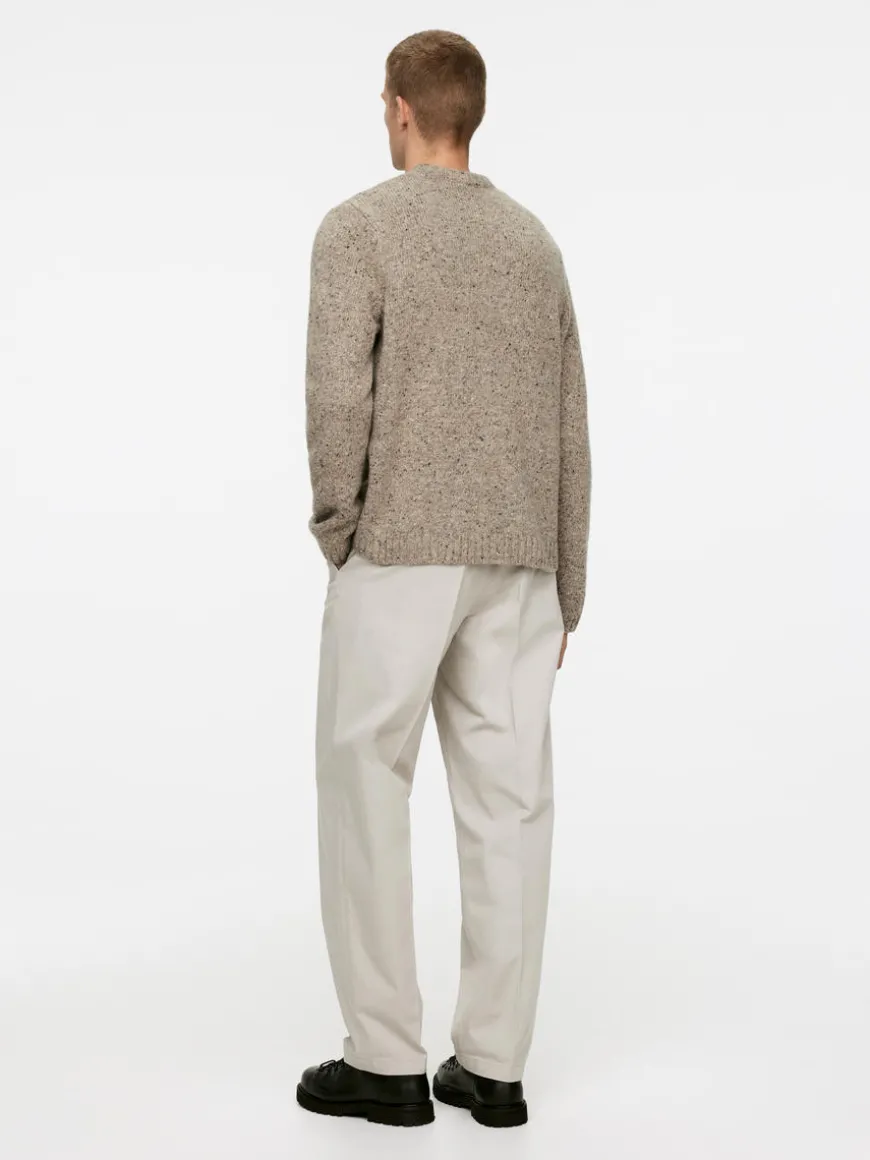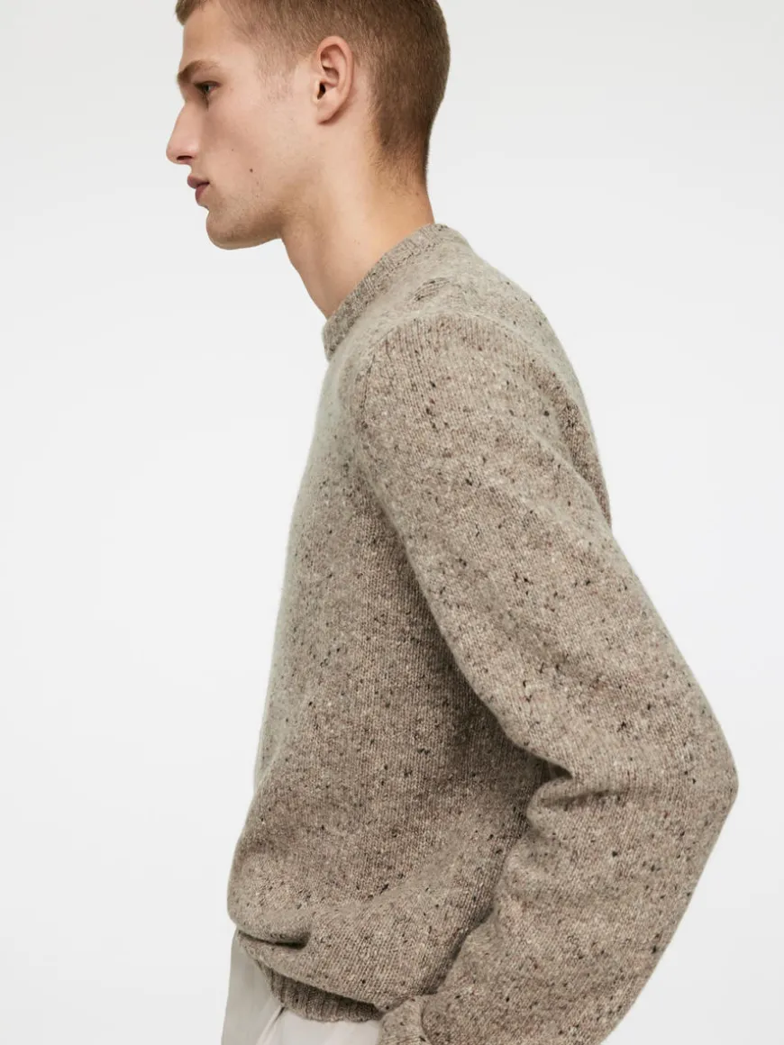 Straight-fit jumper knitted from a wool and alpaca yarn, making it both warm and soft to the touch. The neps texture and ribbed trims add a tactile finish.