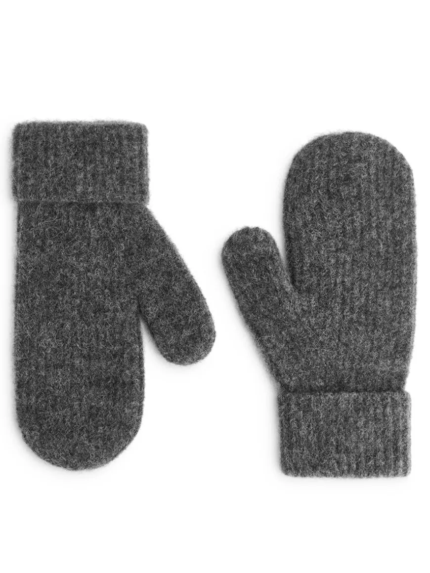 Mittens in a hairy quality knitted from a blend of alpaca and wool. Folded cuffs. The product contains 30% RWS wool, certified by control union 848895. Products certified to the Responsible Wool Standard (RWS) contain wool fiber from farms independently certified to animal welfare and land management requirements.